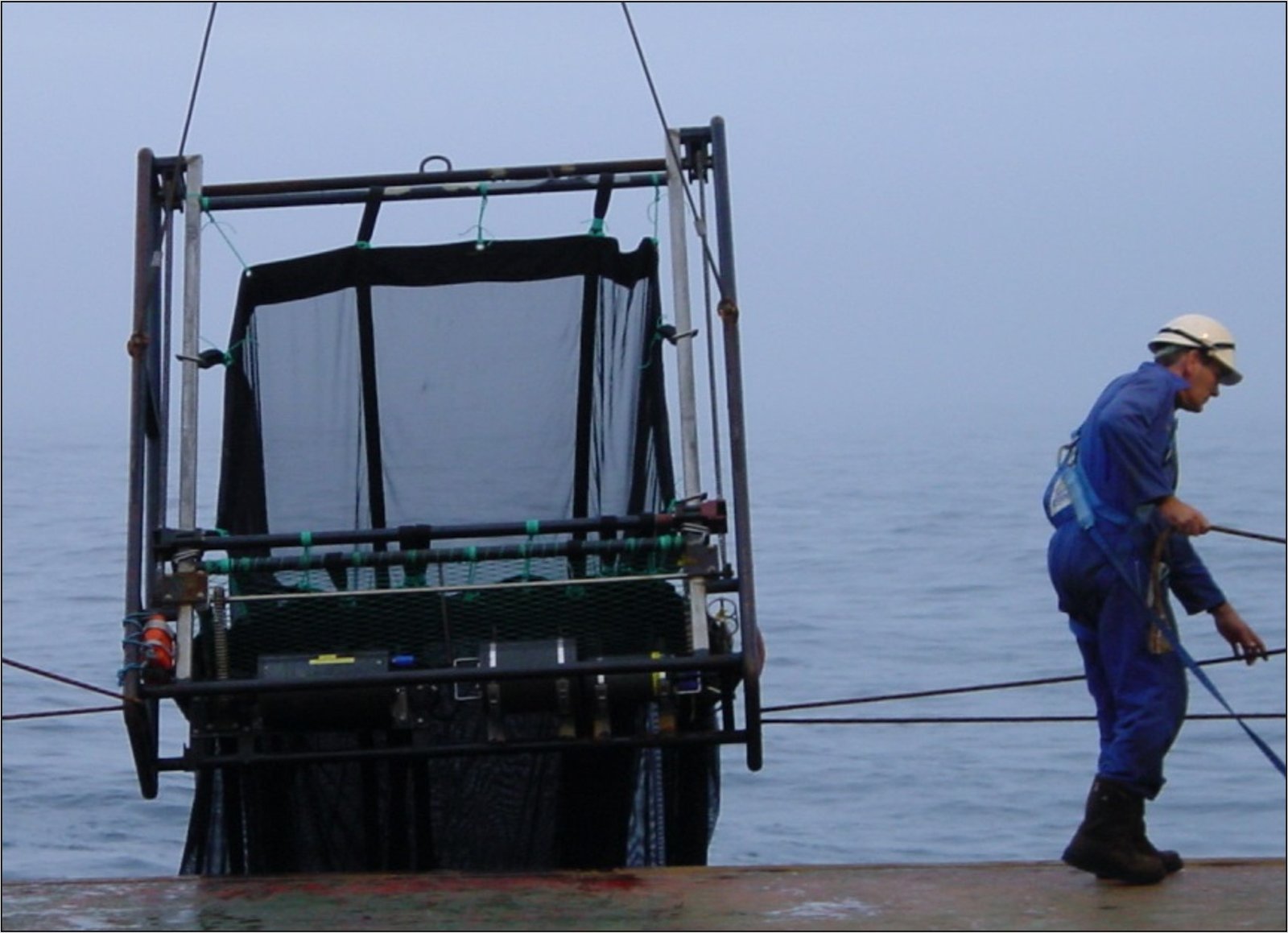 FIGURE 3. Image of the 2.25 m2 frame trawl used on the Discovery surveys (Image: Alex Mustard).