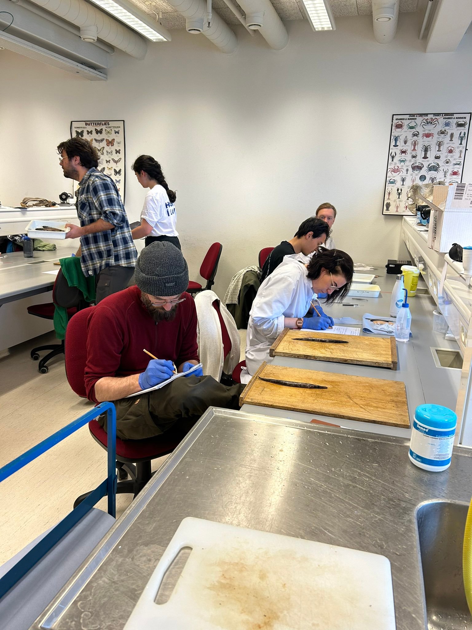 During the SUMMER school at the University of Iceland, students got hands-on experience working with mesopelagic fish in the lab. First, length measurements of the fish were performed. Students then extracted otoliths (ear stones), looked for internal parasites, and studied the fishes gut content. Tissue samples were also retrieved, for use in DNA analysis.