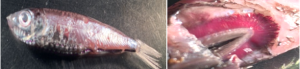 Left: Mesopelagic fish species Maurolicus muelleri,