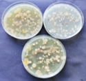 Left: Enrichment plates with different microbial colonies