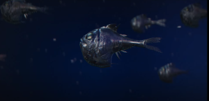 Hatchetfish also participate in diel vertical migration, rising up towards the surface during night to feed on small crustaceans and larvae, and back to the deep during daytime. With their peculiar body, rows of photophores and large upward turning eyes, the hatchetfish is well equipped to survive in the deep, dark depths of the ocean twilight zone.
