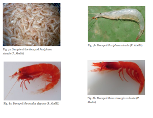 Concerning large crustaceans (shrimps and krill), it is worth remarking the adaptive biological characteristics that provide increased survival chances in this extremely large three-dimensional environment as is the (deep) oceanic environment. Thus most pelagic shrimps are either (very) transparent, or reddish. Transparency provides them, obviously, with a larger probability of being unseen, and therefore of being predated. This feature is obviously useful/adaptive for those species that inhabit epipelagic environments or deeper areas in locations where primary production or turbidity is low and therefore light penetrates into relatively deep regions. This may be the case of the glass shrimps, such as Pasiphaea sivado (Fig. 7), or most krill species. Another characteristic to restrict being detected by vision in deep waters is to have a red colouration, since red light is the first wavelength to disappear with depth. This would provide invisibility for those species being red, or reddish, such as, for example, Gennadas elegans, Robustosergia robusta, and most deep-sea shrimp species (Fig. 8).